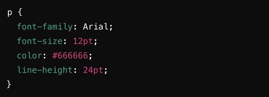 Declarations specify the appearance of elements using various properties like font, color, width, margin, border, and more. If you want to style your paragraph with Arial font, 12-point size, grey color, and double spacing, the CSS rule would look like this: